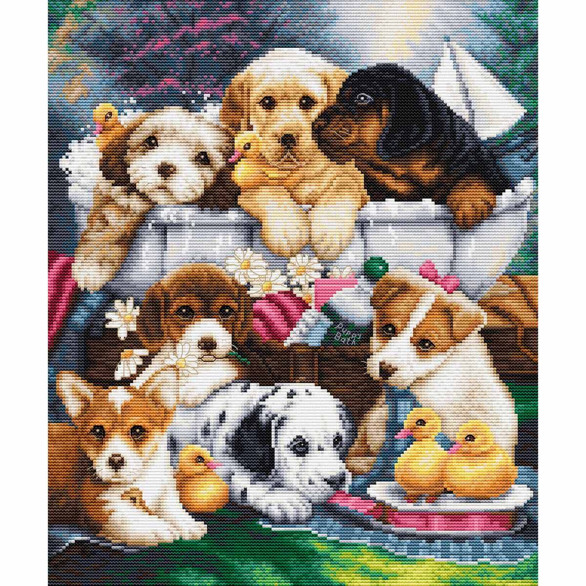 Набор для вышивания крестом Luca-S BU5025, Щенки во время купания 25х32 см