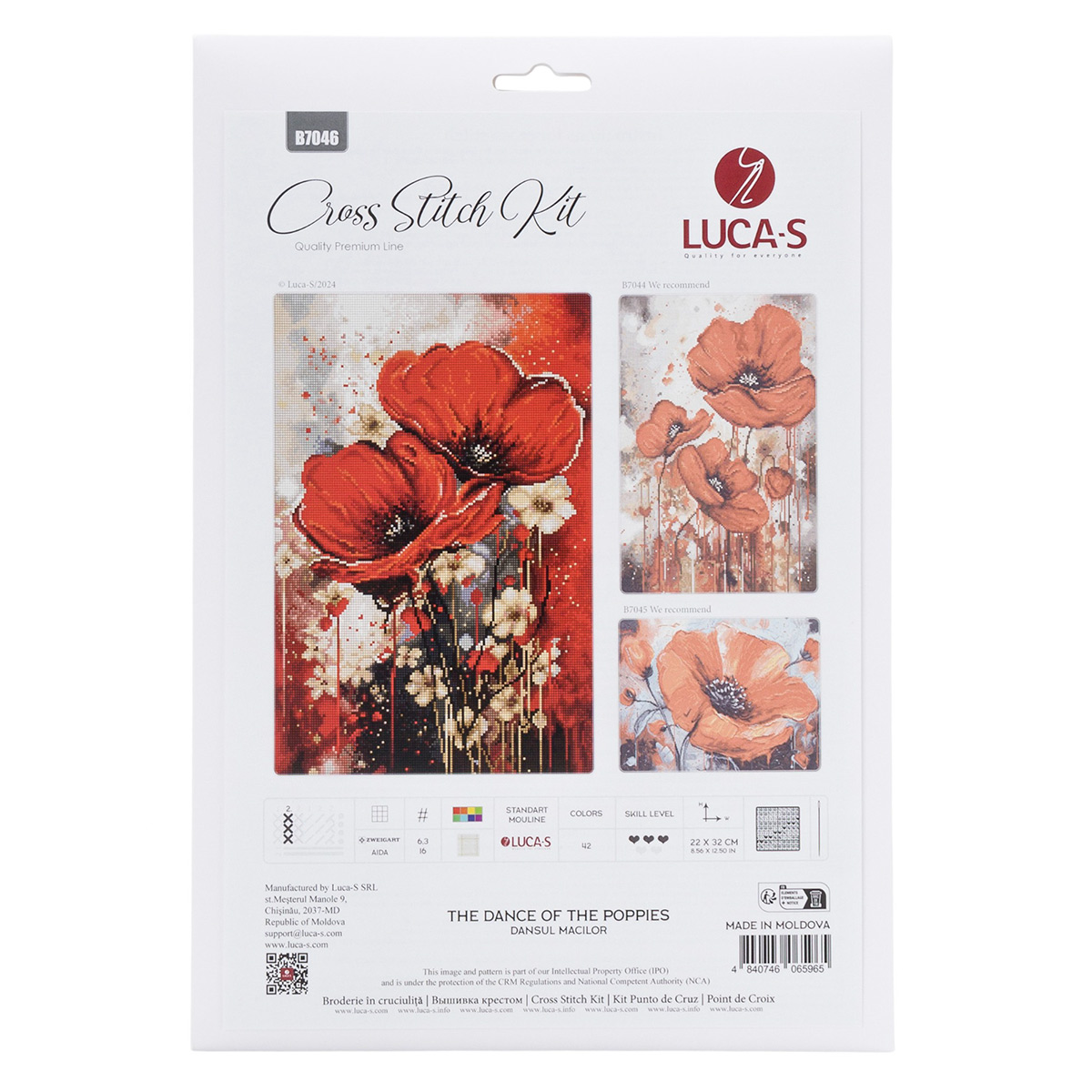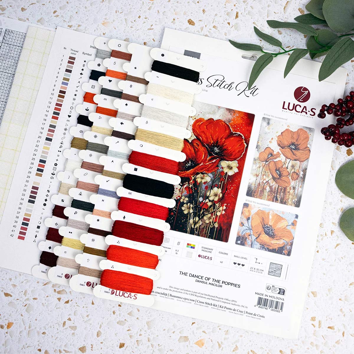 Набор для вышивания нитками Luca-S, Танец Маков, 22х32см