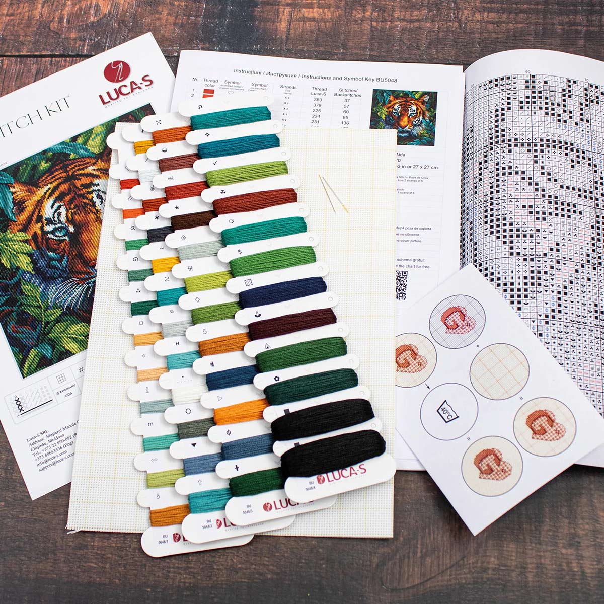 Набор для вышивания нитками Luca-S, Тигр в джунглях, 27х27см