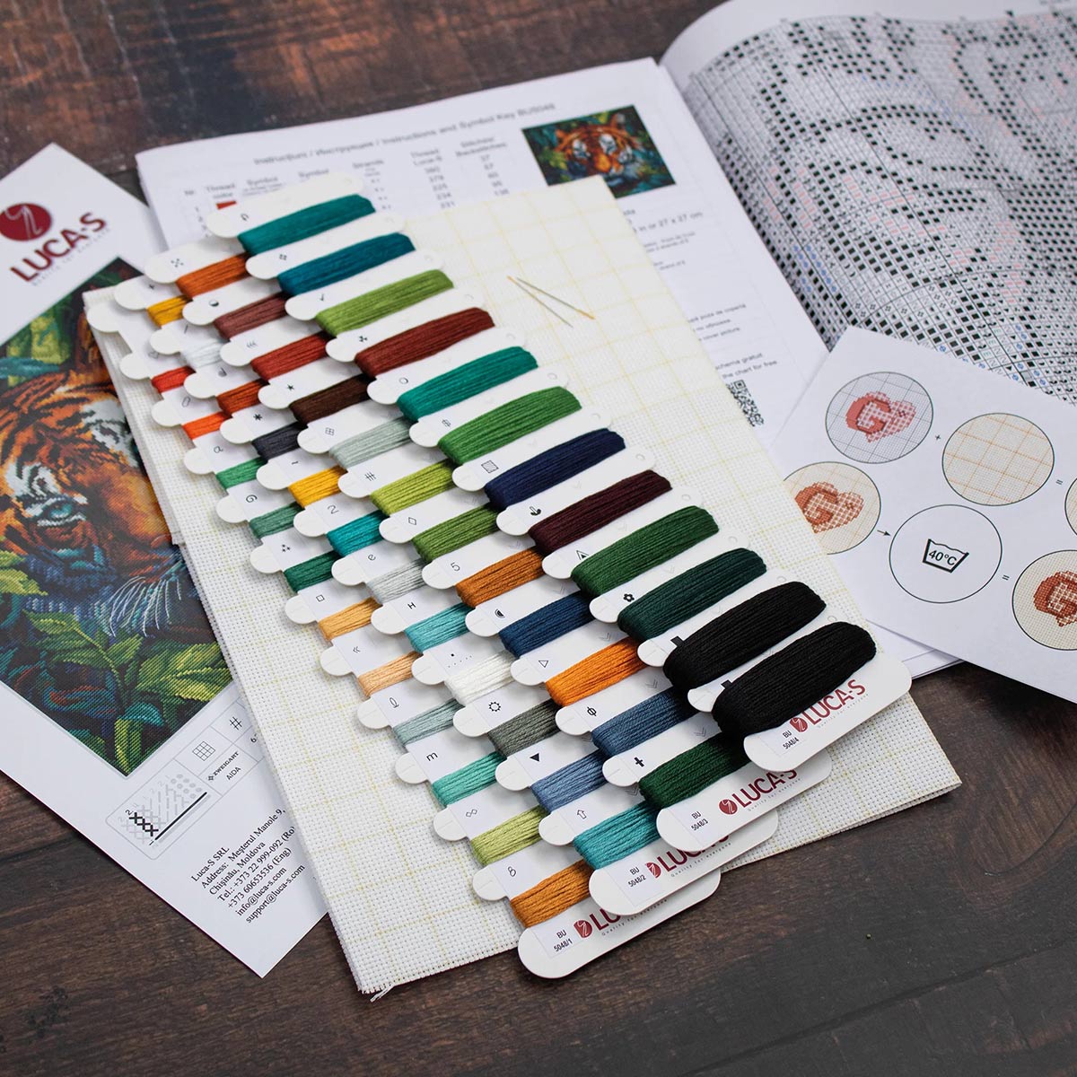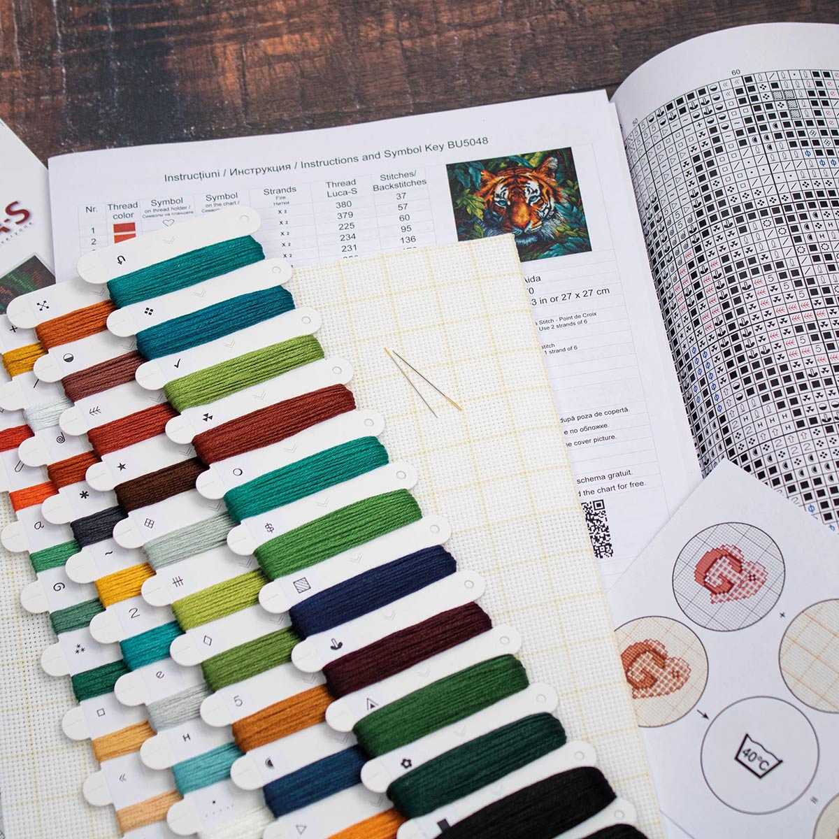 Вышивка крестиком набор Тигр в джунглях от Luca-S – настоящее путешествие в мир волшебства и творческого самовыражения. Перед вами завораживающая картина, которая постепенно оживает под вашими умелыми руками. Каждый стежок, каждый узелок – это маленький шаг к созданию уникального полотна, которое станет не только украшением вашего дома, но и хранителем теплых воспоминаний о часах, проведенных за увлекательным занятием. Готовая вышивка символизирует силу, независимость и красоту природы. Яркие полосы тигра контрастируют с разнообразием зелёных тонов листвы, придавая вышивке живость и выразительность. Набор для вышивания Тигр в джунглях – это прекрасный подарок для тех, кто ценит ручную работу, кто ищет умиротворения в творчестве и наслаждается красотой тонких деталей. Набор для вышивания крестиком - идеальный презент любителям вышивания, друзьям, маме, подруге на день рождения, Новый год. Luca-S позаботились о вашем комфорте, предоставив все необходимые материалы высочайшего качества. Нитки ярких и насыщенных цветов отличаются прочностью и износостойкостью, чтобы вы могли наслаждаться результатом своего труда долгие годы. Набор снабжён удобным картонным органайзером для ниток, где каждая нить аккуратно размещена и подписана, соответствуя обозначениям на схеме. Забудьте о сложностях и неудобствах. С набором Тигр в джунглях от Luca-S вы получите всё необходимое для создания настоящего шедевра. Наслаждайтесь процессом, почувствуйте радость от творчества, и результат вашей работы будет долго радовать вас и ваших близких. Это не просто вышивка крестиком, это вложение души и времени, это история, рассказанная стежок за стежком.