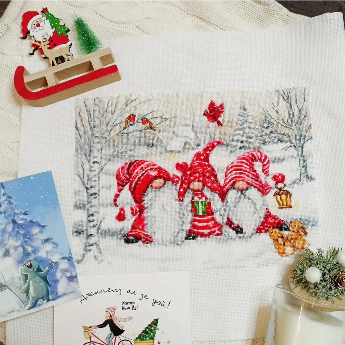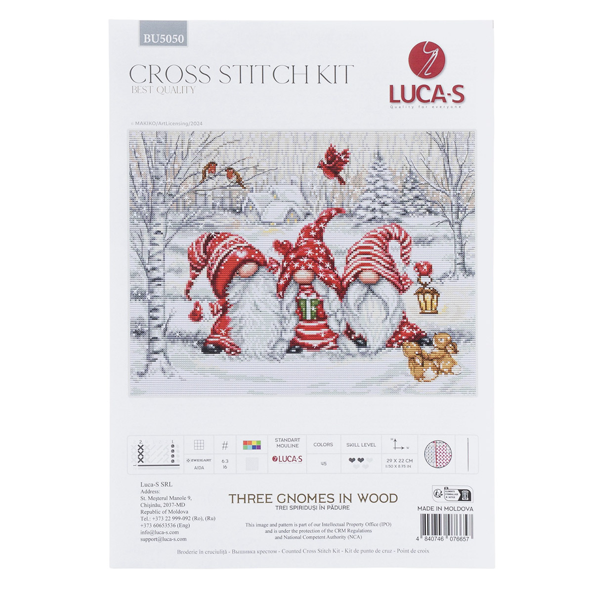 Набор для вышивания нитками Luca-S, Три гнома в лесу, 29х22см