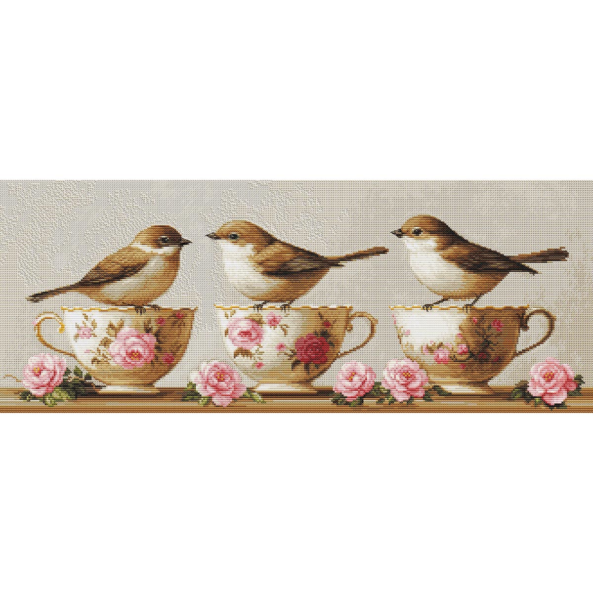 Набор для вышивания нитками Luca-S, Три изящные птички, 52х21см