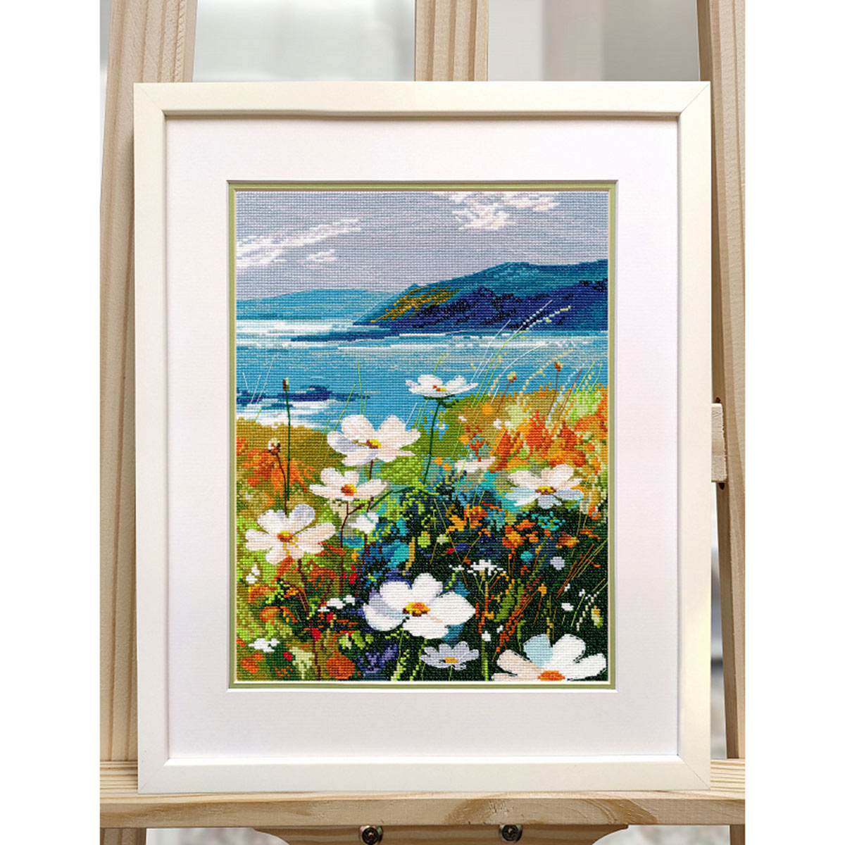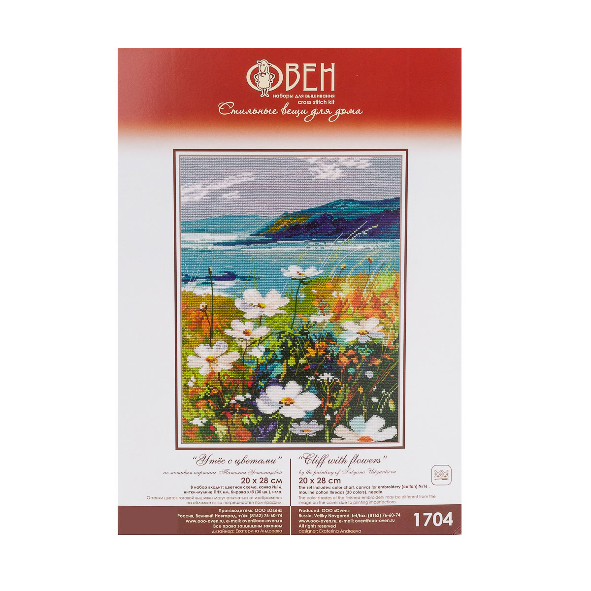 Набор для вышивания нитками Овен, Утёс с цветами 20х28см