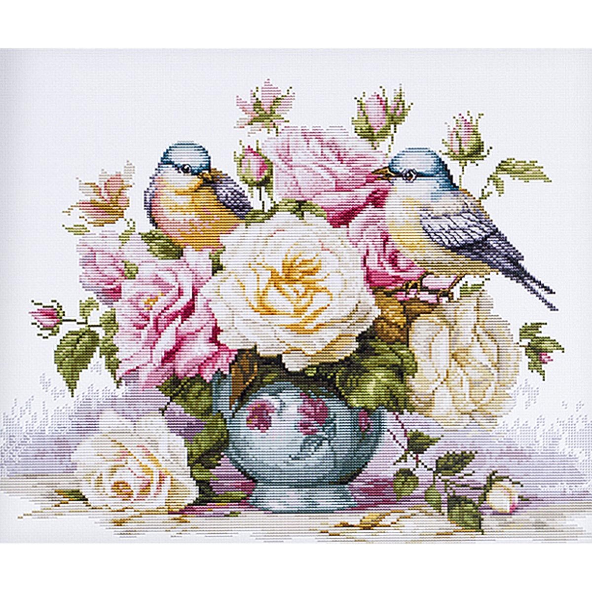 Набор для вышивания нитками, Luca-S, B7038 Ваза с розами и птицами 34х27см