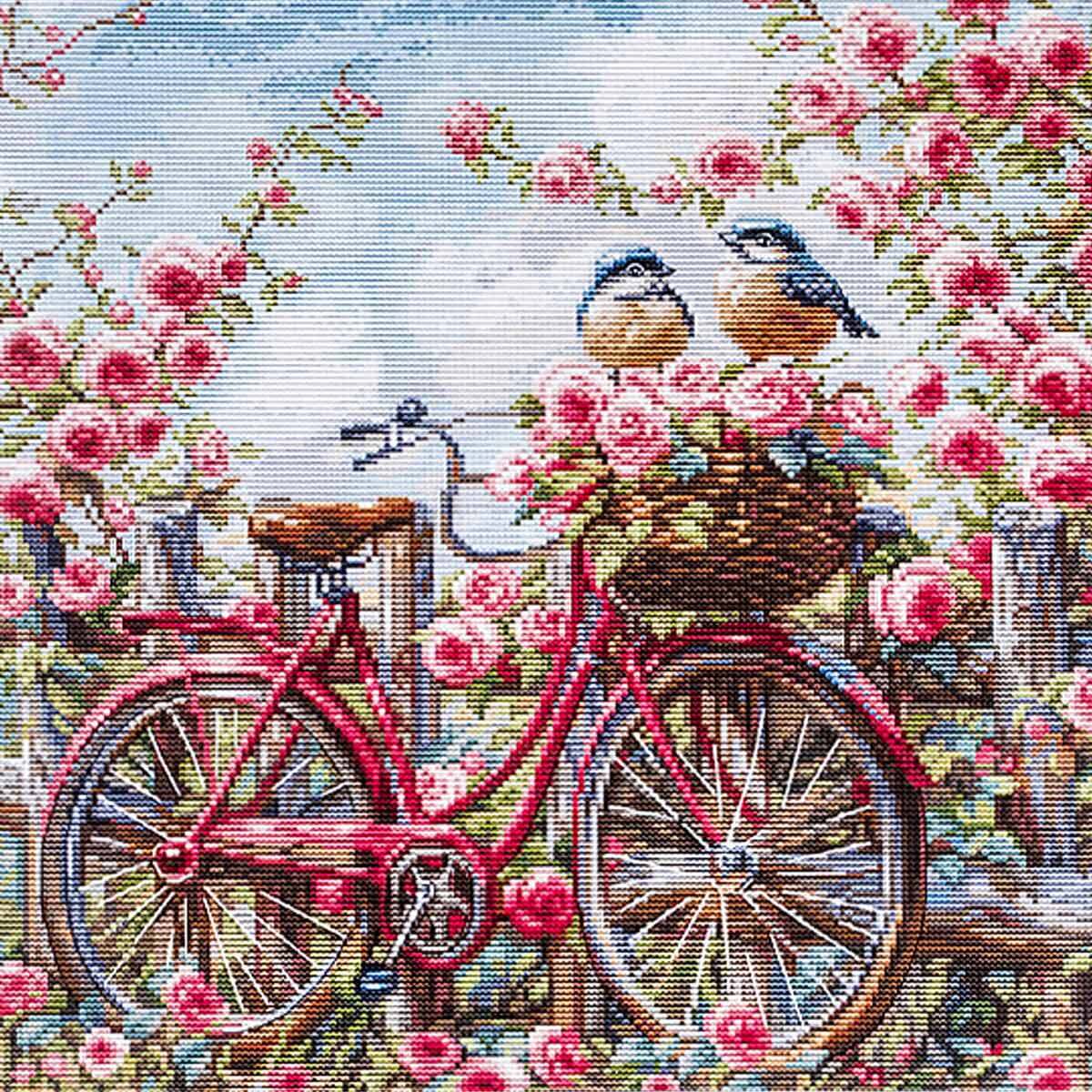 Набор для вышивания нитками, Luca-S, BU5061 Велосипед с розами 29х29см
