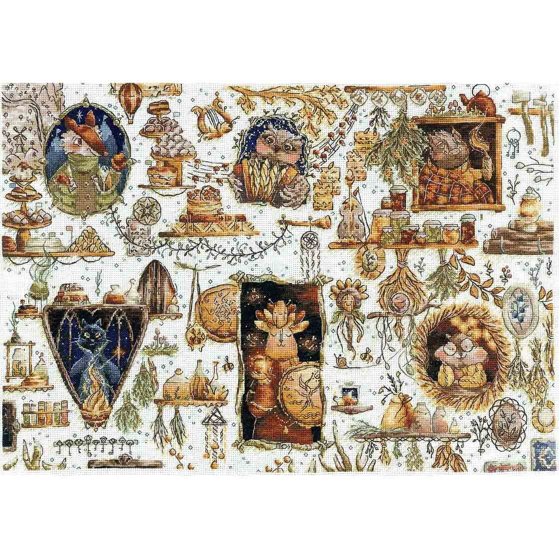 Набор для вышивания Волшебные звери порадует любую мастерицу и украсит ваш интерьер, не оставляя равнодушным ни одного любителя ручного труда. Такая вышивка будет не только красивым украшением, но и источником положительных эмоций, напоминающих об удивительном мире зверей, созданным талантливыми художниками. Вышитые звери станут ярким и оригинальным украшением для вашего дома или подарком для близкого человека. Сюжет Волшебные звери сосредоточен вокруг шести главных героев: хитрого лиса, черного кота, кабанчика, мудрой совы, медведя и хомяка. Набор подойдет как новичкам, так и опытным искусницам. Начинающие - смогут начать вышивать без страха, а опытные перейдут на новый уровень мастерства. Для вышивания крестиком не нужны специальные навыки, главное - быть терпеливым, усидчивым и аккуратным. Вам не нужно дополнительно ничего приобретать, в составе набора предусмотрена канва Aida 16 ct белая, хлопковое мулине в 39 оттенках, качественная игла, обеспечивающая легкость и точность шитья, инструкция, а также цветная символьная схема, которую поймет даже ребенок, эл.схема Saga. В наборе применяются техники: крест, полукрест, назад иголку (бэкстич). Размеры готовой работы: 43,5х30,5 см. Заполнение: частичное.