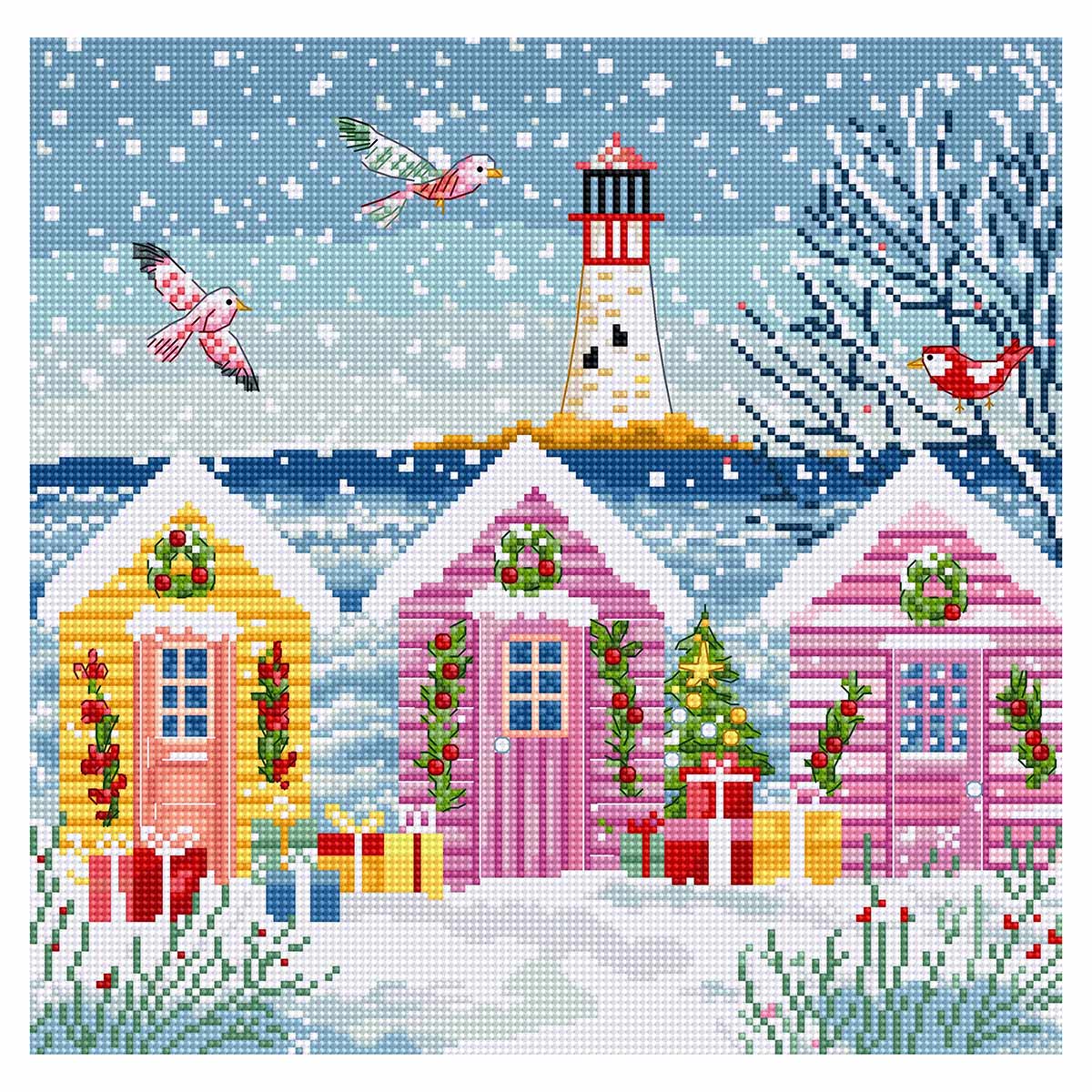 Набор для вышивания нитками LetiStitch L9915, Заснеженные коттеджи на берегу моря 23х22см