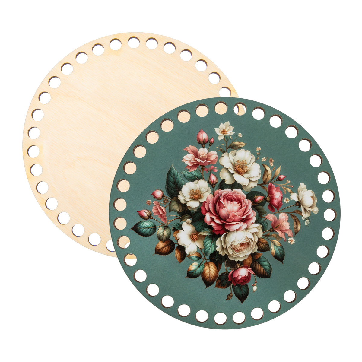Набор донышек для вязания Глянцевый фанера ⌀15х0.4 см, 2 шт, 10 Цветочная композиция, Love2art ДВ-01