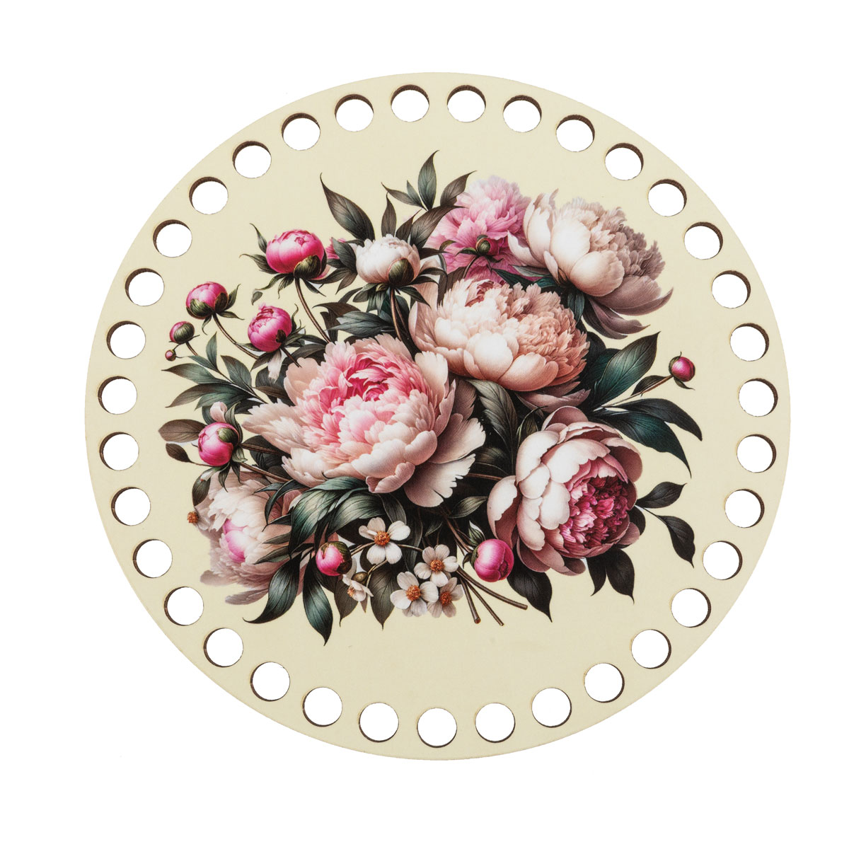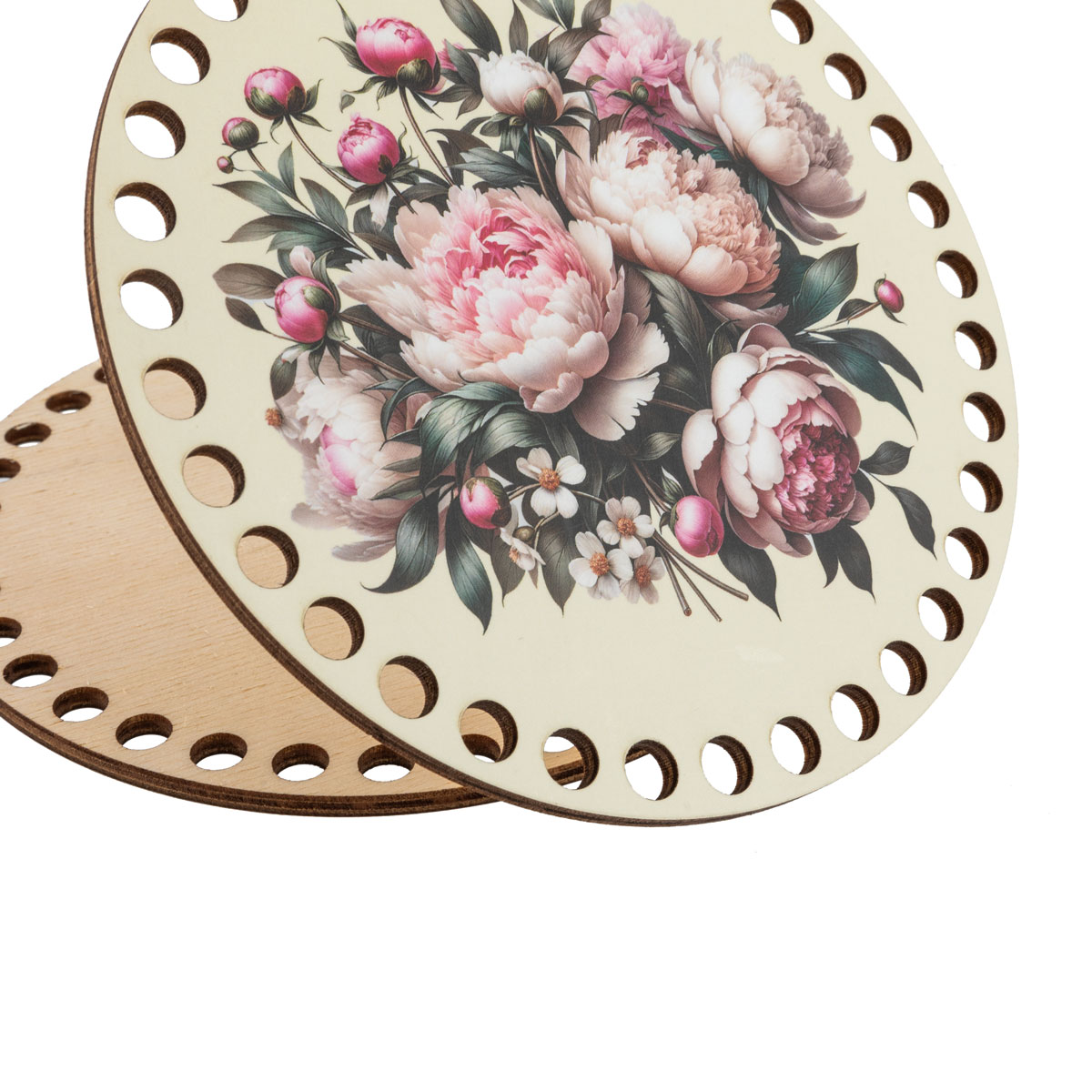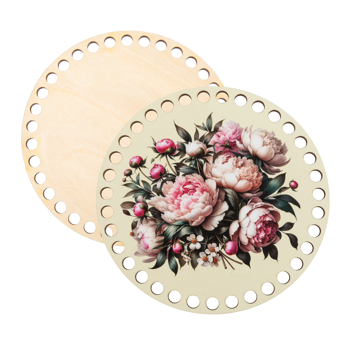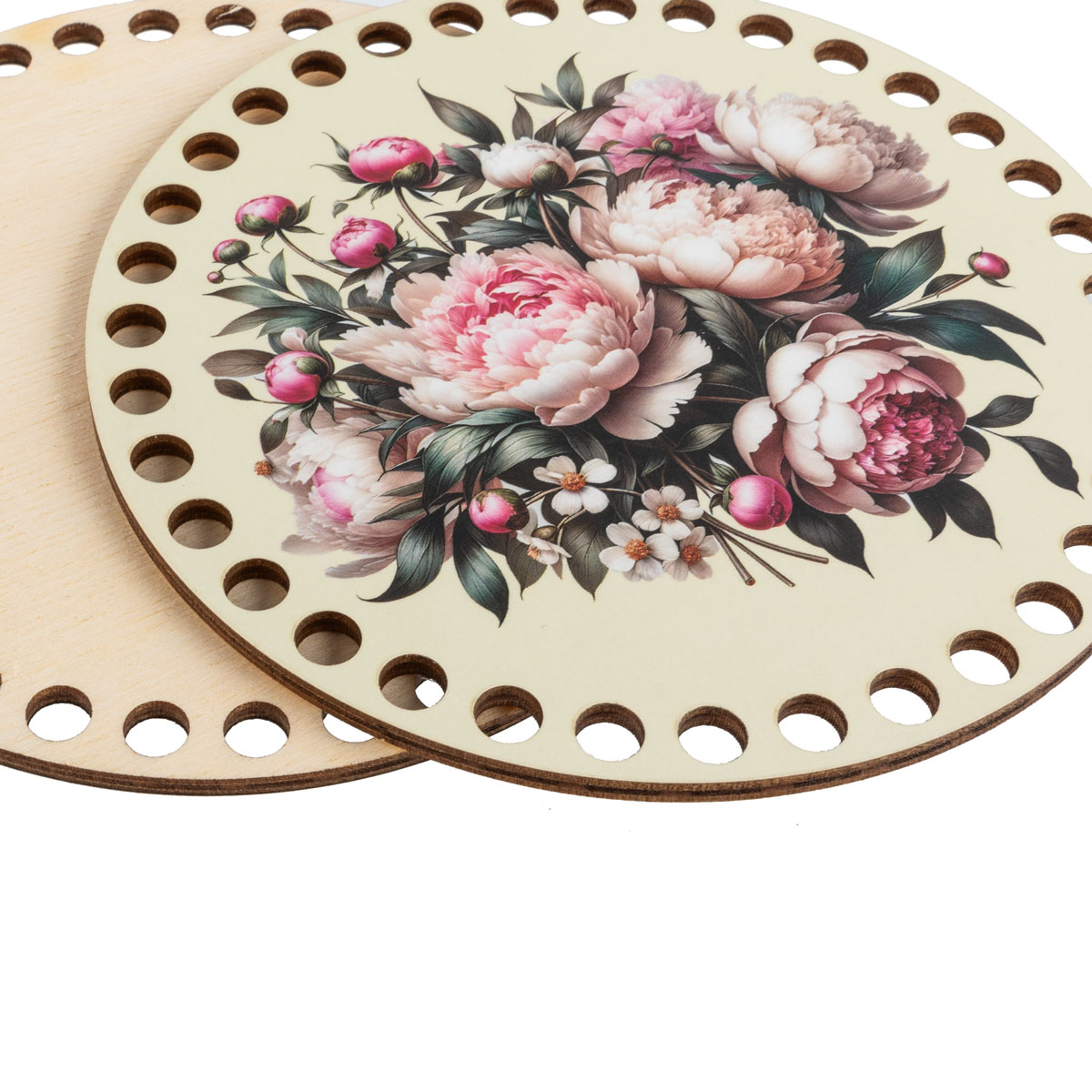 Набор донышек для вязания Матовый фанера ⌀15х0.4 см, 2 шт, 06 Пионы, Love2art ДВ-02