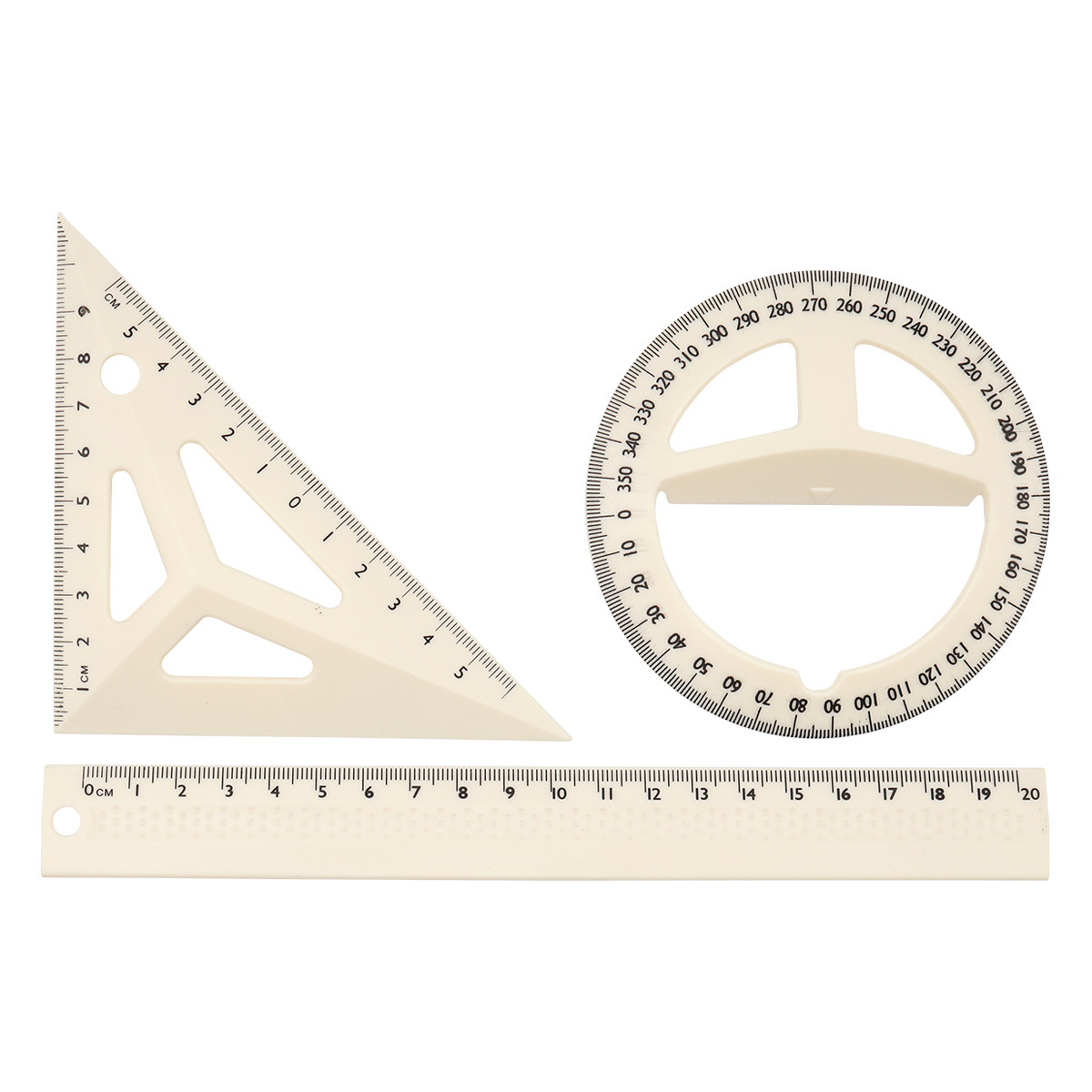 Набор геометрический (линейка + треугольник + транспортир) (белый), DV-1655