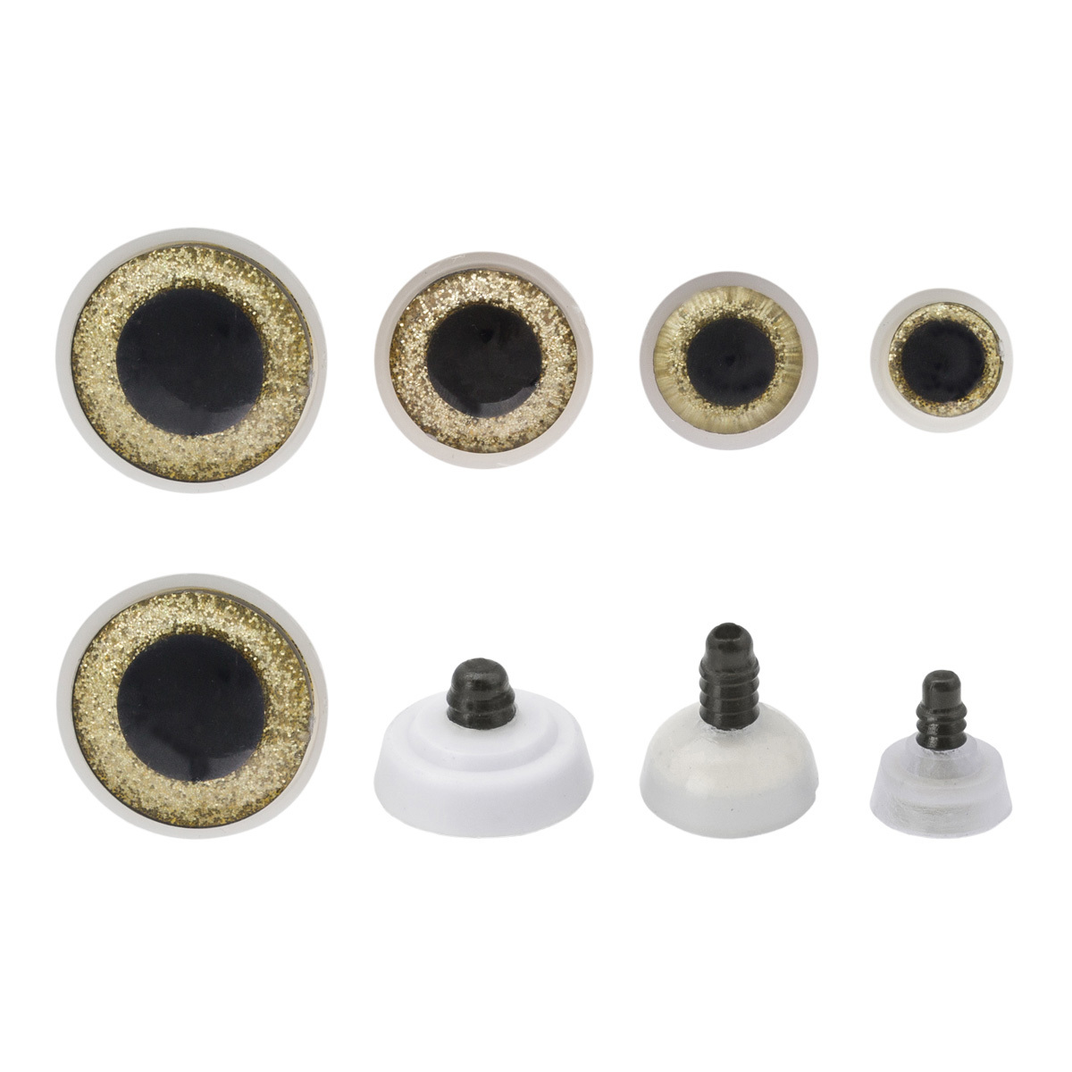Набор глаза искристые золотые 12, 16, 20, 25мм, 8 шт