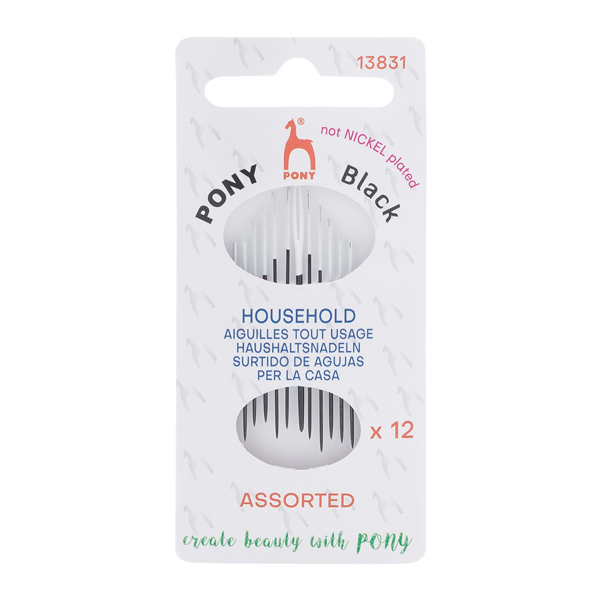 Иглы ручные Household Black c белым ушком, ассорти, 12 шт, Pony, 13831