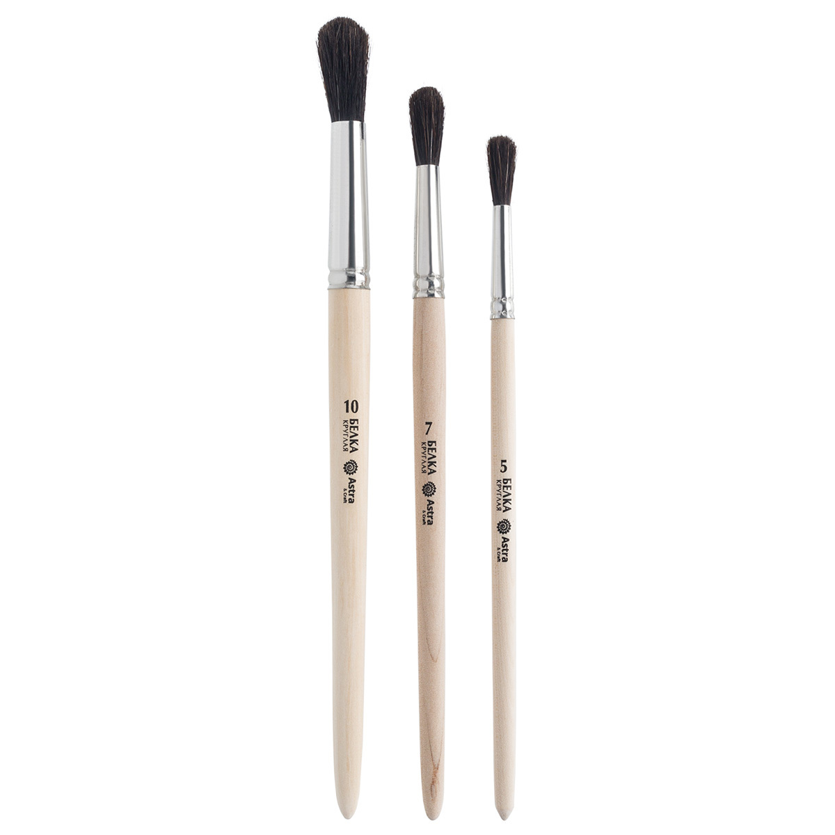Набор кистей №2, белка (круглая ученическая №5, 7, 10), 3 штук, Astra&Craft