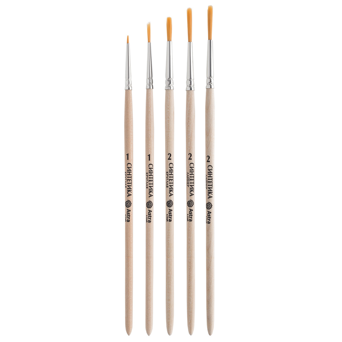 Набор кистей №5, синтетика (круглая №1, 2, круглая №1 ук./в 0.5, лайнер №2.2), 5 штук, Astra&Craft