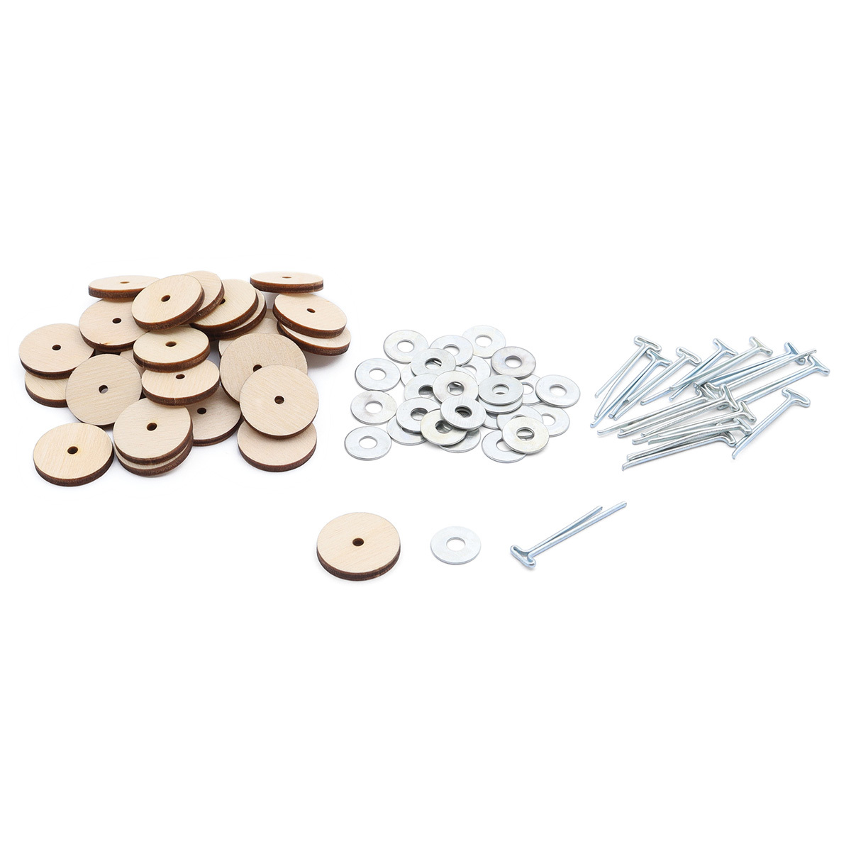 Набор креплений: диск из фанеры 20мм (30 шт), Т-шплинт 2х25мм (15 шт), шайба 4х12мм (30 шт)