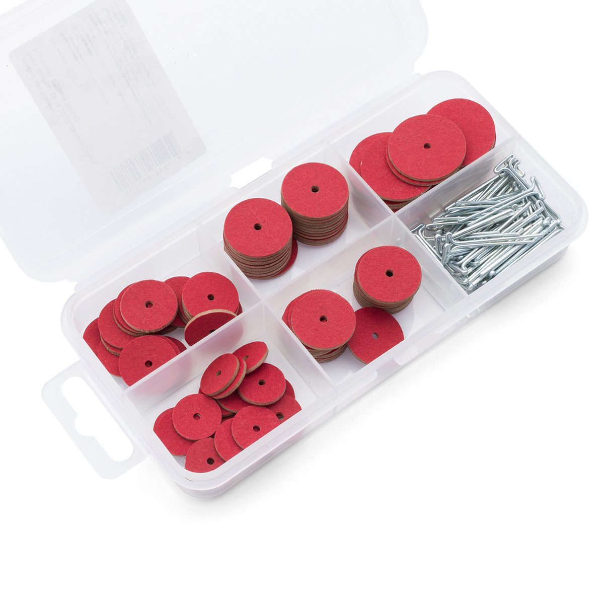 Набор креплений: диск из фибры 15,18,20,22.25мм (5х20 шт), Т-шплинт 2х25мм (50 шт)