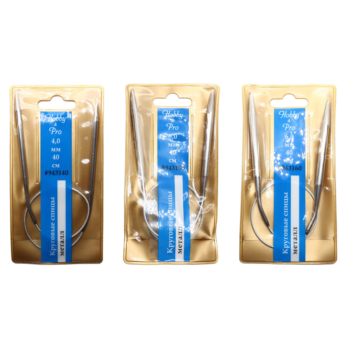 Набор круговых спиц для вязания металл 40см, 4,0мм/5,0мм/6,0мм, Hobby&Pro