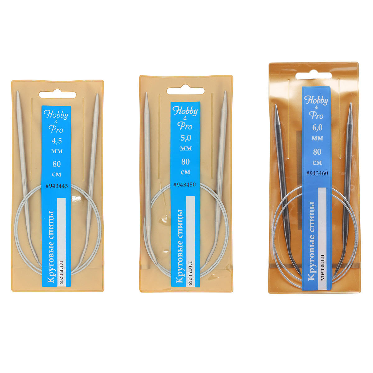 Набор круговых спиц для вязания металл 80см, 4,5мм/5,0мм/6,0мм, Hobby&Pro