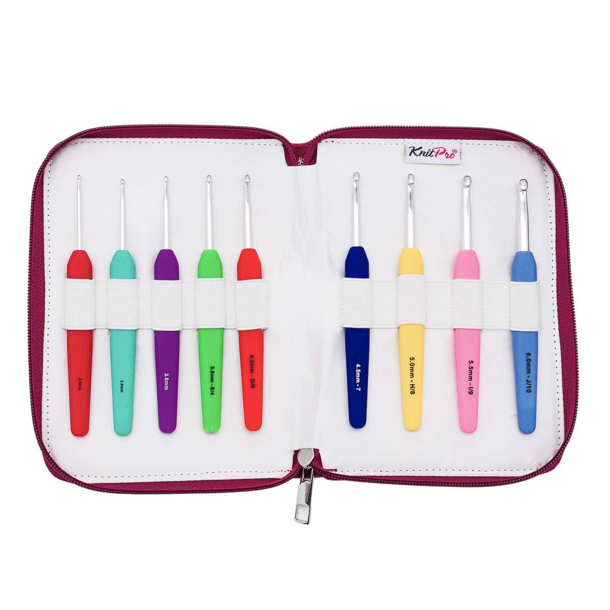 Набор крючков с цветными мягкими ручками Waves от KnitPro подходит для вязания ажурных вещей, например салфеток, шалей, топов. Изготовлены из практичного алюминия, прочные, но очень легкие. Отличный выбор для новичков, а также для любителей длительного вязания – руки будут меньше уставать. Мягкие ручки эргономичной формы обеспечивают удобный захват, что поможет избежать судорог и формировать аккуратные, не слишком плотные петли. На каждой ручке указан размер стержня – это удобно, если нужно быстро найти подходящий вариант. Кроме этого, для каждого диаметра стержня предусмотрен свой цвет. Крючки Waves подходят для работы с любыми материалами – шерстью, хлопком, акрилом, вискозой. Благодаря специальной обработке поверхности (анодированию) крючки не окрашивают светлую шерстяную пряжу, имеют приятный серебристый цвет. Набор упакован в тканевый органайзер. Пенал на застежке-молнии подходит для хранения и транспортировки. Цвет: ассорти. Размер: от 2 мм до 6 мм. Количество в наборе: 9 шт.