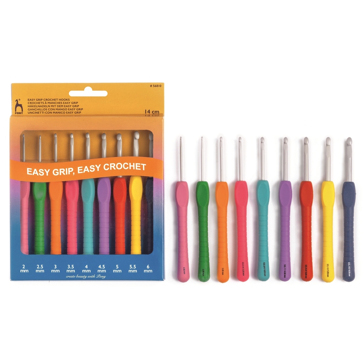 Набор вязальных крючков PONY подходит для вязания любых ажурных вещей – шалей, платьев, топов, салфеток. Изготовлен из алюминия со специальной обработкой, легкий и компактный, его удобно брать с собой. Благодаря специальной обработке нить легко скользит при работе, поверхность защищена от коррозии, а светлая шерстяная пряжа от соприкосновения с крючком не меняет цвет. Гладкая поверхность стержня и аккуратная классическая форма головки позволяют вывязывать ровные петли и формировать правильный узор. В наборе: крючки размером 2-6 мм, длиной 14 см, всего 9 шт.