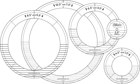 Набор шаблонов - колец для лоскутного одеяла 1.5" – 2.5" – 3.5" – 4.5" – 5.5" – 6.5" – 7.5" – 8.5" и 10,5". Размеры 10 × 11 × 0,25 дюйма.