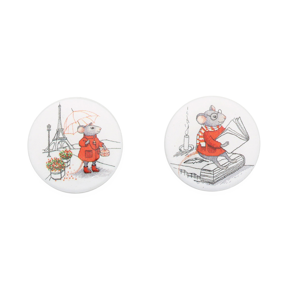 Игольницы Hobby&Pro на магнитах с красочными миниатюрами – функциональные вещицы и украшение вашего рабочего места. Эти аксессуары пригодятся любителям рукоделия, вышивания и шитья. Игольницы помогут быстро собрать иголки или булавки со стола, а также безопасно их хранить – магнит надежно удерживает мелкие металлические предметы. Идея: если у вас есть металлическая основа, зафиксируйте на ней бумажную схему для вышивания с помощью игольниц. Размер: диаметр 25 миллиметров, толщина 3 мм. В наборе: магнитные игольницы Мышка с книжкой, Мышка в Париже.