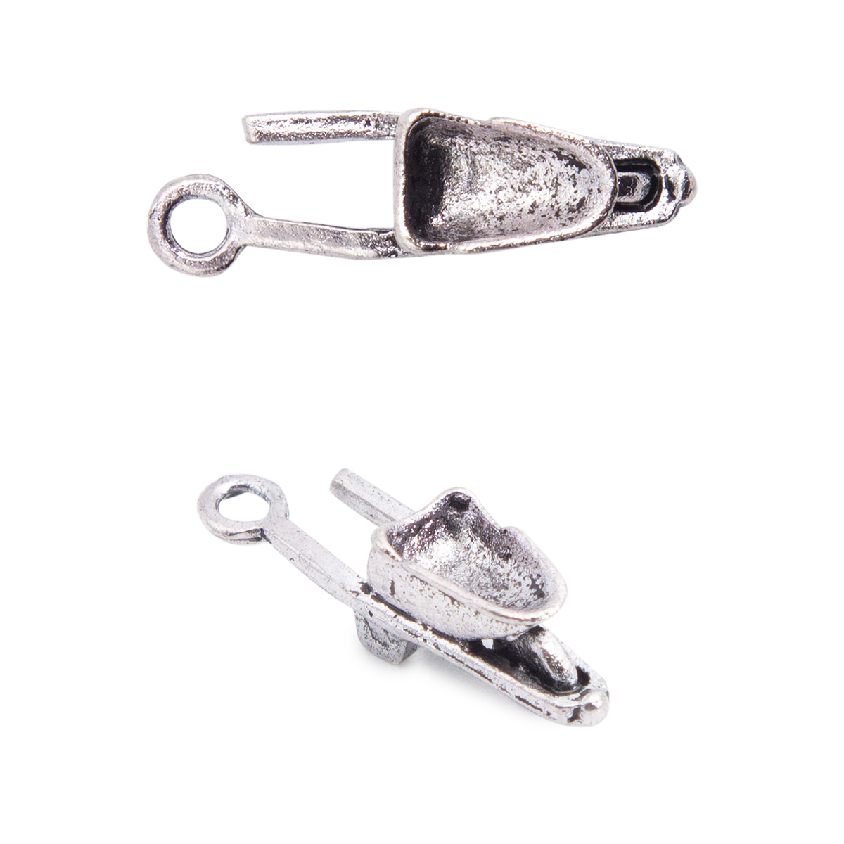 Фигурная подвеска Садовая тачка – основа для оригинальных авторских поделок. Подходит для создания бус, браслетов, ожерелий. Проявляйте фантазию: комбинируйте разные подвески, сочетайте их с бусинами, разделителями и другими элементами, и у вас получится оригинальное украшение. Несколько идей: – подберите к подвеске колечко или карабин, чтобы закрепить ее на сумке, связке ключей или чехле мобильного телефона; – добавьте подвеску к браслету, бусам, другим украшениям. Подвеска изготовлена из прочного металлического сплава и сохраняет цвет при длительном контакте с кожей. Размер: 5х21 мм. Количество: 10 шт.