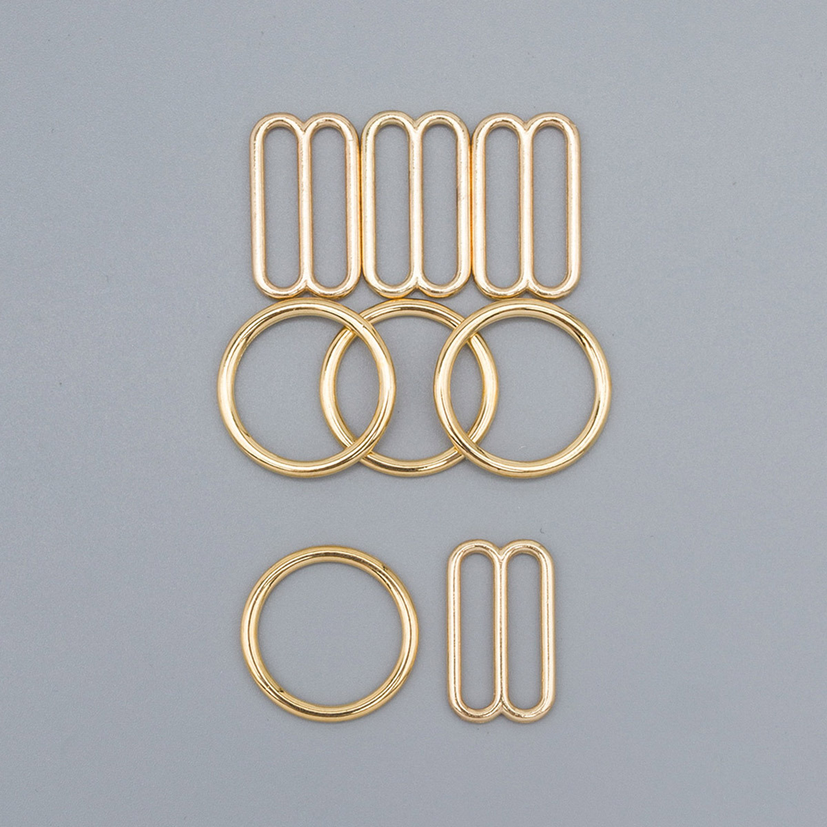 Набор фурнитуры для бюстгальтера металл (кольца ⌀14 мм + регуляторы 15 мм по 4 шт), золото, 27177