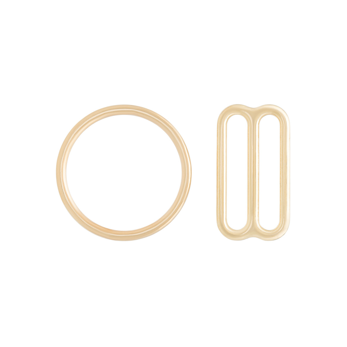 Набор фурнитуры для бюстгальтера металл (кольца ⌀18 мм + регуляторы 18 мм по 4 шт), по 4 шт, золото, 27514