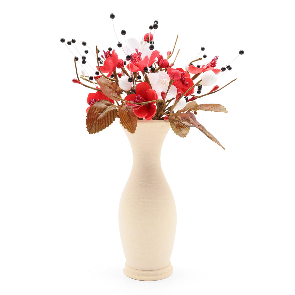 Набор мини-букетиков искусственных цветов – яркая и практичная основа для декорирования. Букетики изготовлены из искусственных материалов, они яркие, не требуют особого ухода и надолго сохранят внешний вид. При необходимости аккуратно протрите их влажной тканью или стряхните пыль. Несколько идей: – украсьте букетиком комнатный цветок в горшочке, это будет забавная и оригинальная деталь; – попробуйте себя в роли флориста: добавьте искусственную зелень, цветы и соберите авторскую композицию; – используйте для оформления фотосессий; – вместе с другим декором подходящих цветов оформите листьями витрину кофейни, магазина. В наборе: цветок 'Веточка с бусинами' (4 мм, длина 19 см), букетики 'Магнолия' (3х3 мм, высота 14 см), 2 шт. Цвет набора: бело-красный. Обратите внимание: вазочка на фотографии не входит в набор.