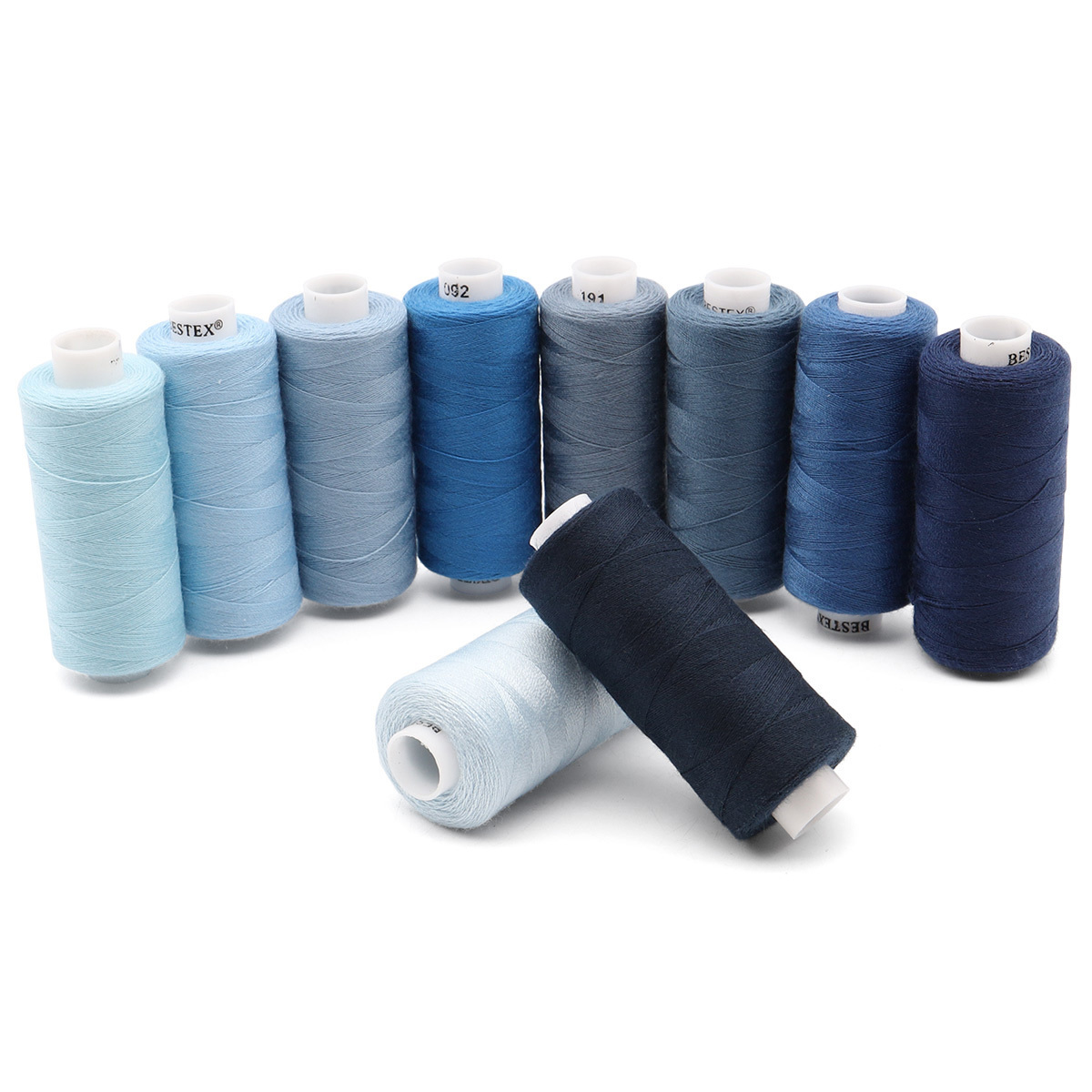Швейные нитки (набор) Bestex 40/2, 400ярд, 10 катушек в упак, ассорти "Синий микс"