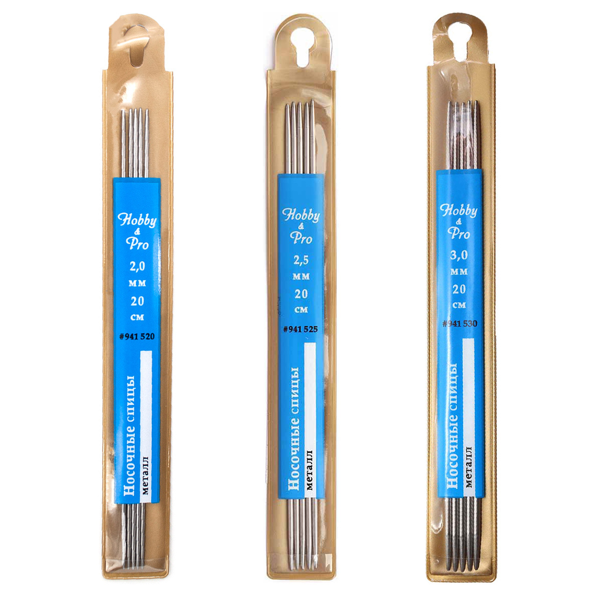 Набор носочных спиц для вязания металл 20см, 2,0мм/2,5мм/3,0мм, Hobby&Pro