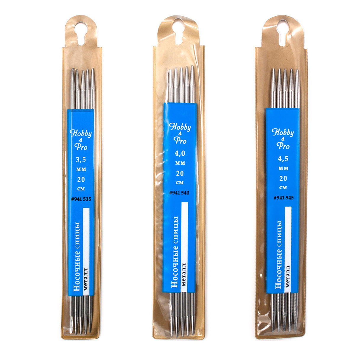 Набор носочных спиц для вязания металл 20см, 3,5мм/4,0мм/4,5мм, Hobby&Pro