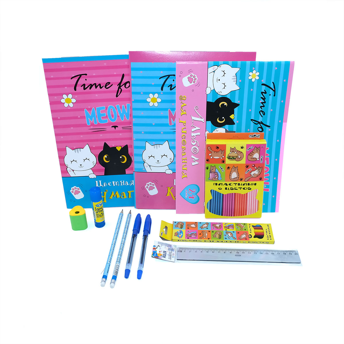 Набор отличника с дизайном для девочек содержит все необходимое для школьника: – Шариковая ручка и чернографитный карандаш, точилка и пластиковая линейка незаменимы на уроках математики, чистописания, русского языка и любых других занятиях. – Клей-карандаш, цветная бумага, пластилин и цветной картон пригодятся на уроках труда или на творческом мастер-классе. – Цветные карандаши и альбом для рисования пригодятся на уроках рисования. Яркое оформление набора поможет поднять настроение в школе и дома. В наборе: ручка шариковая 2 шт., карандаш ч/г 2 шт., точилка, линейка 20 см, клей-карандаш, картон цветной, бумага цветная, альбом для рисования 24 листа, пластилин 6 цв*20 г с пластиковым стеком, цветные карандаши 177 мм 6 цв.