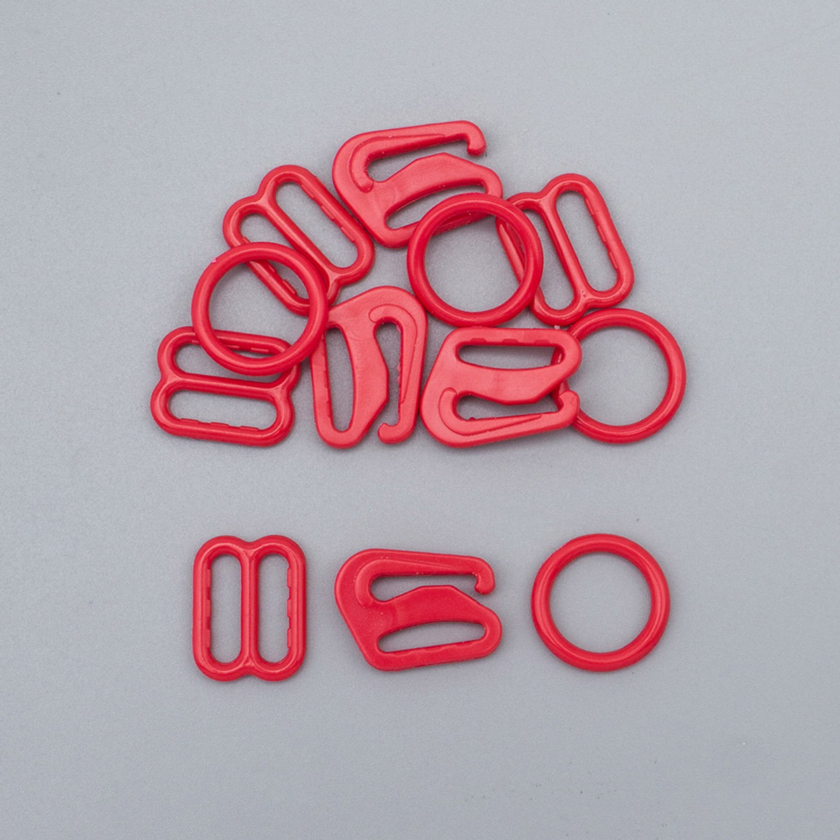 Набор фурнитуры для бюстгальтера пластик (кольца ⌀9.3 мм + регуляторы 10 мм + крючки 10 мм по 4 шт), цв.100 красный, 27160