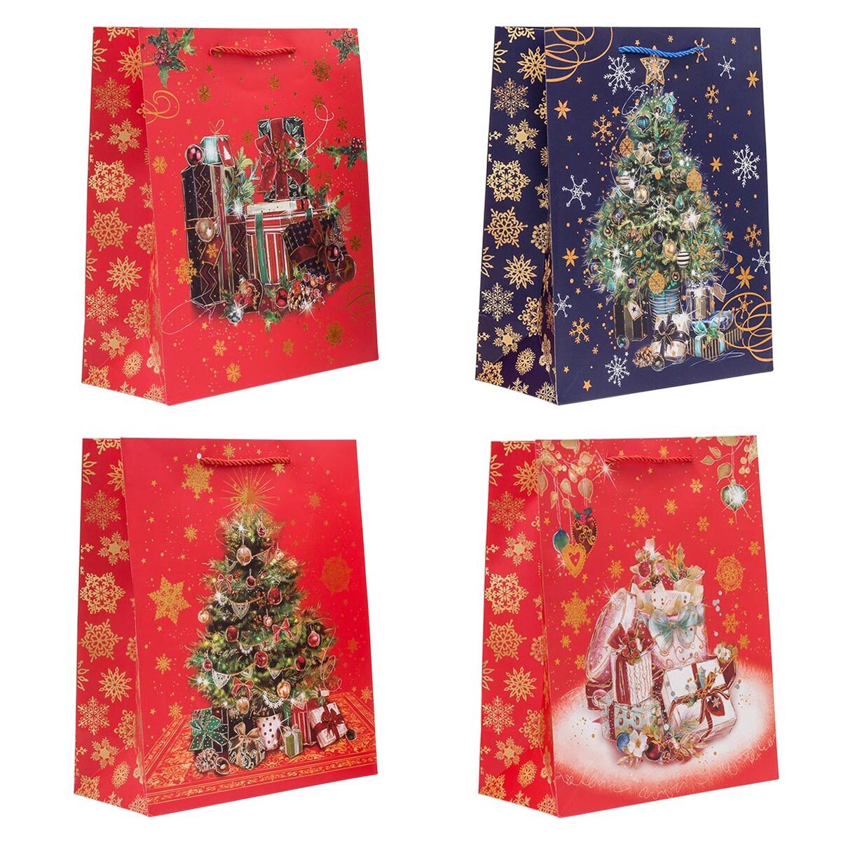 Набор подарочных новогодних пакетов, "С Новым годом", 26х32х10 см, 4 шт