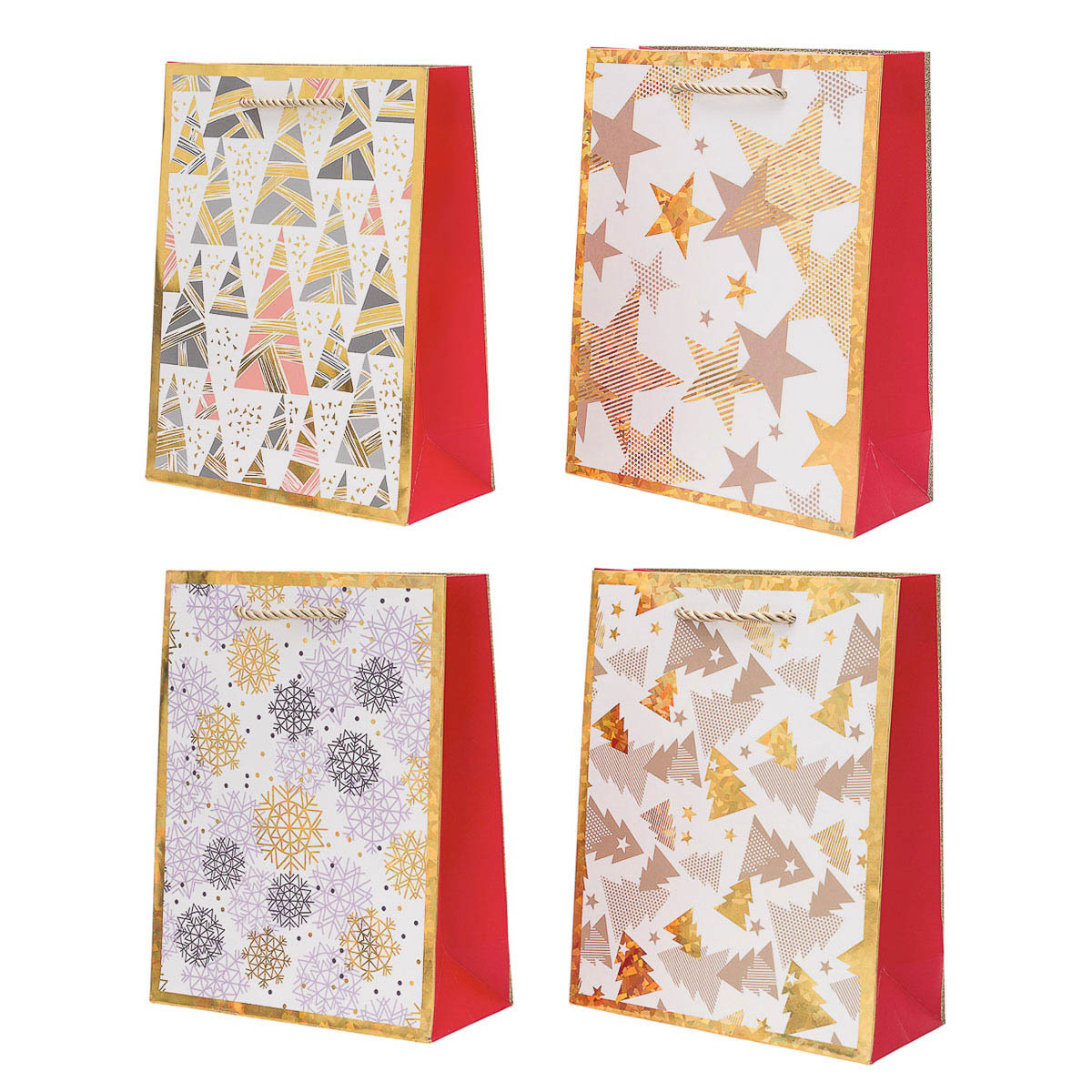 Набор подарочных новогодних пакетов Золотая голография 18х23х8 см, 210 г/м², 4 шт