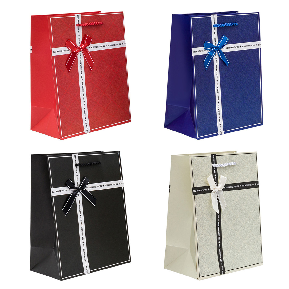 Набор подарочных пакетов, цветные с бантиком,18х23х10 см, 4 шт
