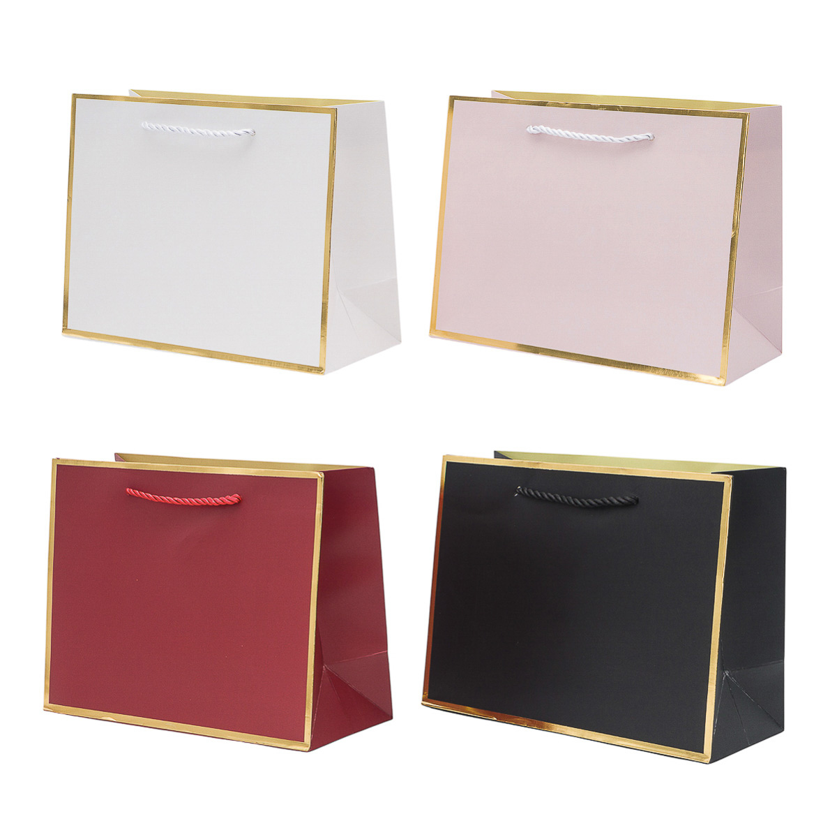 Набор подарочных пакетов, цветные с золотой окантовкой 23х17.7х10 см, 210 г/м², 4 шт