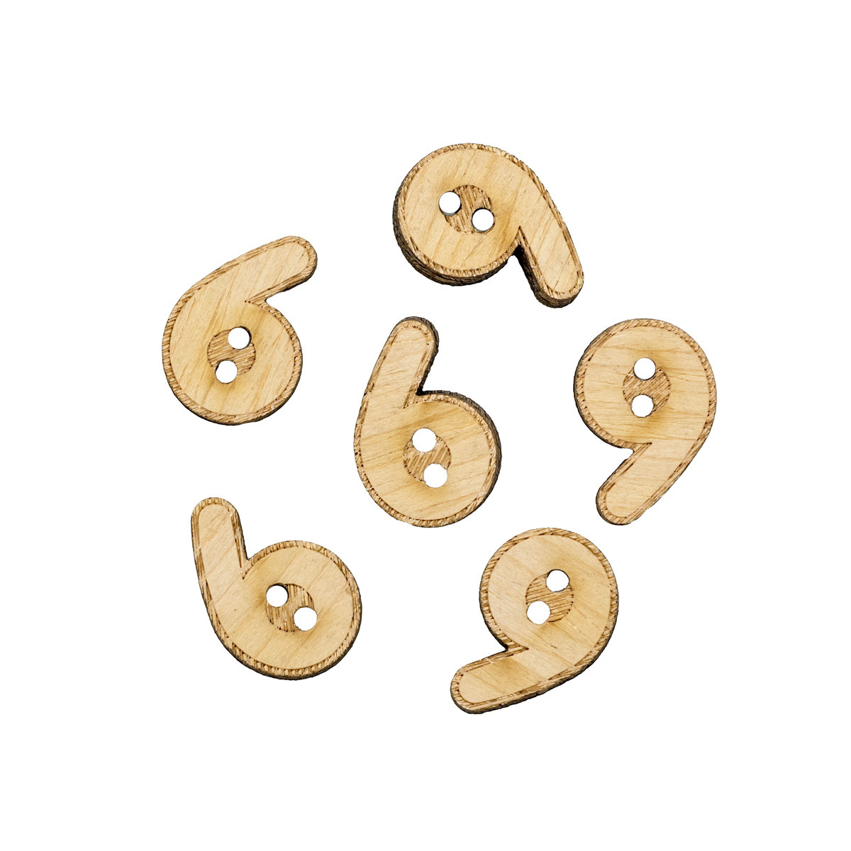 Украшения декоративные пуговицы Цифра Шесть, 6 шт, BTLWA68-32L-01-P6
