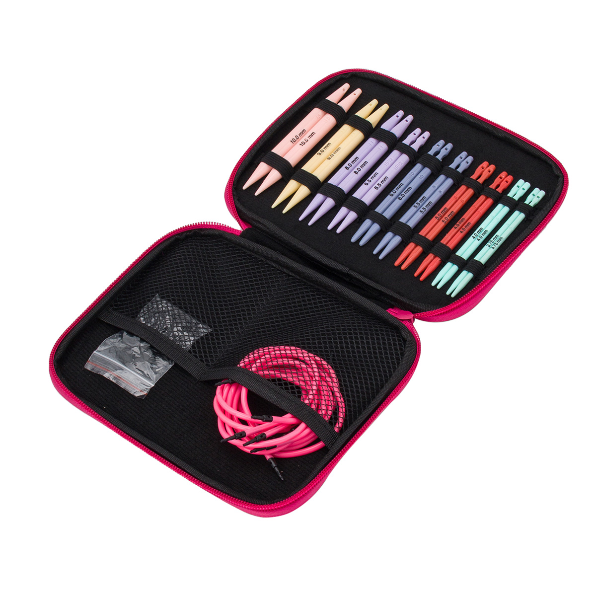 Набор спиц для вязания съемных – отличный подарок для увлеченных вязальщиц, которые ценят высокое качество инструментов, удобство и порядок на рабочем месте. Съемные спицы для вязания со сменными тросиками можно легко адаптировать под любой масштаб работы: от компактных изделий вроде воротника или манишки до крупных проектов, таких как платье или покрывало. Спицы можно использовать как круговые, так и прямые. Спицы для вязания изготовлены из пластика, легкие и компактные. Нить легко скользит при работе со спицами, а светлая шерстяная пряжа от соприкосновения со спицей не меняет цвет. Тросик изготовлен из гибкого пластика. Пластиковые спицы имеют хорошее сцепление, предотвращая соскальзывание петель, поэтому они идеально подходят для начинающих вязальщиц. Кроме того, пластиковые спицы можно взять в дорогу, чтобы приятно провести время во время длительного полета за любимым занятием. На каждую спицу нанесена маркировка с указанием размера: 3,75 мм, 4 мм, 4,5 мм, 5 мм, 5,5 мм, 6 мм, 6,5 мм, 8 мм, 9 мм и 10 мм. Для удобства все размеры имеют индивидуальный цвет. Качество соединения безупречно – тросик надежно фиксируется на спице, обеспечивая надежное и прочное крепление. Также в наборе вы найдете сменные тросики, заглушки и коннекторы. Все вязальные принадлежности компактно упакованы в чехол на молнии, который легко брать с собой в дорогу или на мастер-классы. Набор съемных спиц для вязания позволит создавать любые комбинации, подстраиваясь под особенности каждого изделия и индивидуальные предпочтения вязальщицы.