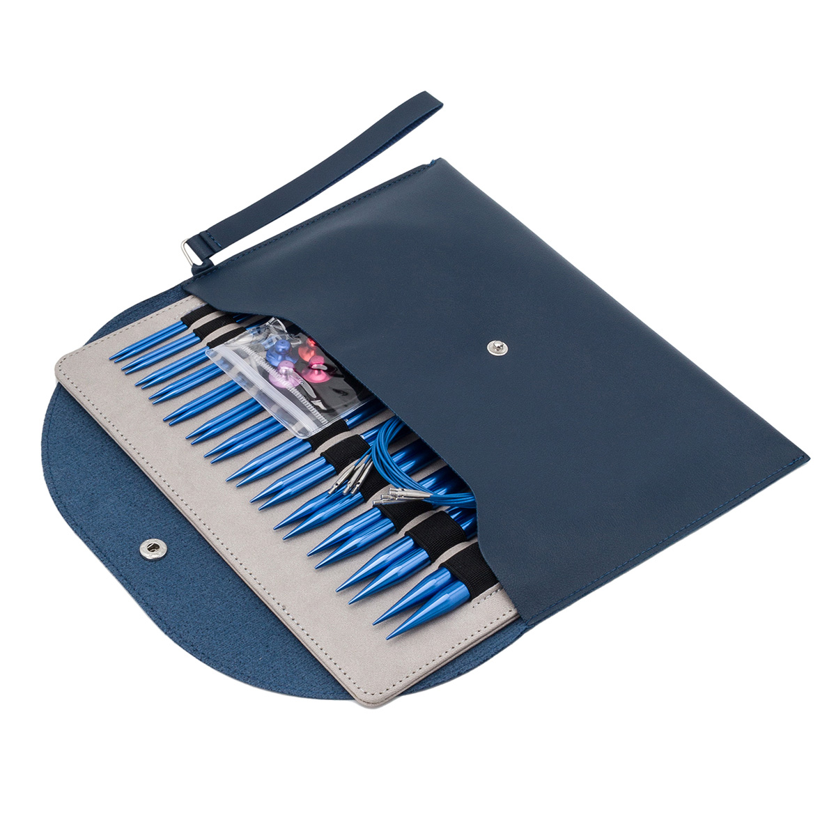 Набор съемных спиц для вязания 10см, 13 размеров (3мм-10мм), цв. синий, алюминий