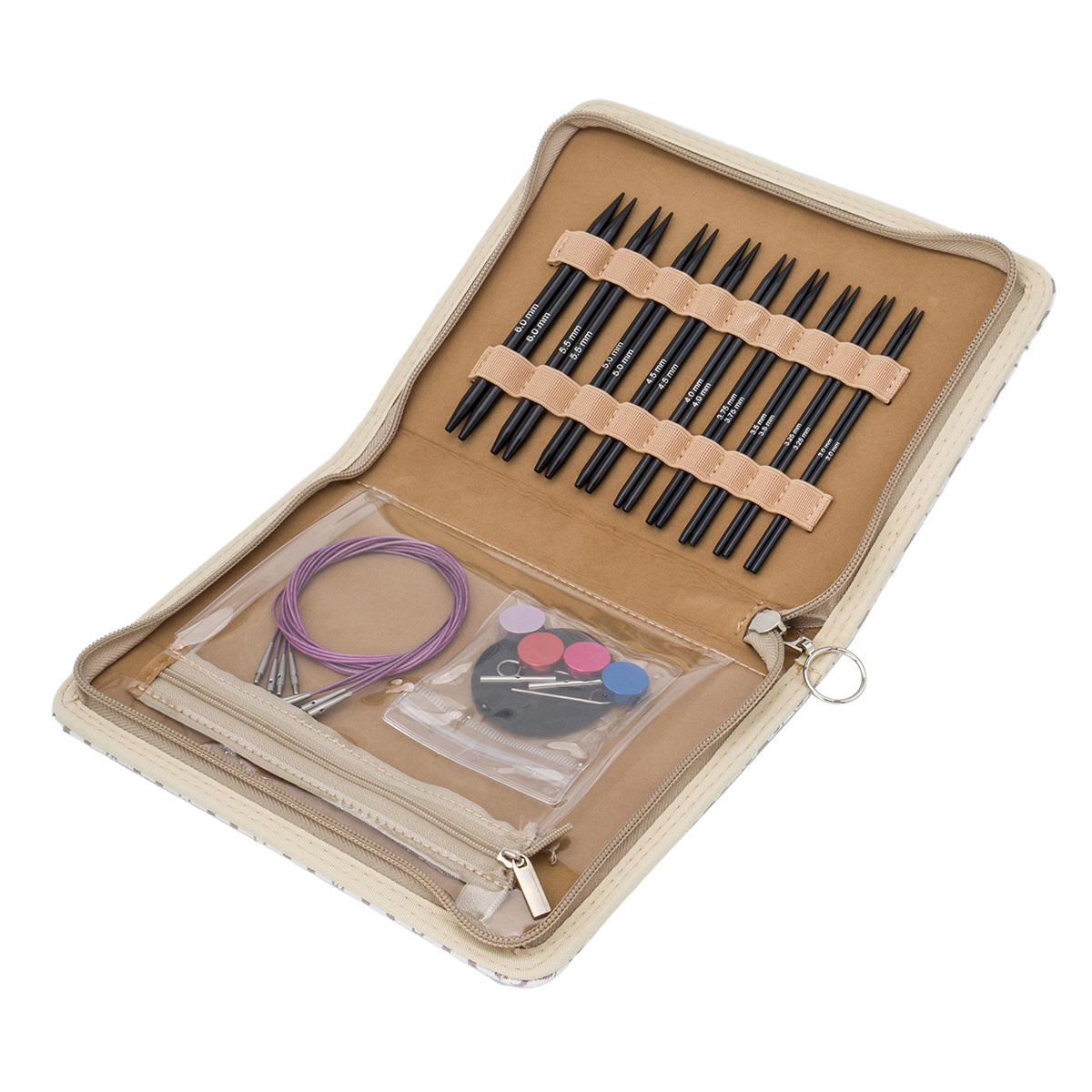 Набор спиц для вязания съемных заменит целую коллекцию спиц и аксессуаров, значительно экономя место и средства. Больше не нужно хранить огромное количество спиц разных размеров – в этом наборе все необходимое всегда под рукой. Съемные спицы со сменными тросиками можно легко адаптировать под любой масштаб работы: от компактных изделий вроде воротника или манишки до крупных проектов, таких как платье или покрывало. Спицы можно использовать как круговые, так и прямые. Съемные спицы для вязания изготовлены из легкого, но прочного алюминия. Алюминиевые спицы не вызывают усталость в руках, позволяя полностью погрузиться в творческий процесс. Благодаря гладкой поверхности пряжа легко скользит по спице, сохраняя свою структуру. Она не цепляется и не деформируется в процессе вязания. Закруглённые кончики безопасны для пальцев. На каждую спицу нанесена маркировка с указанием размера: 3 мм, 3,25 мм, 3,5 мм, 3,75 мм, 4 мм, 4,5 мм, 5 мм, 5,5 мм, 6 мм. Качество соединения безупречно – тросик надежно фиксируется на спице, обеспечивая надежное и прочное крепление. Также в наборе вы найдете сменные тросики, заглушки и ключики для тросиков, коннекторы, патч для удержания спицы. Все вязальные принадлежности компактно упакованы в чехол на молнии, который легко брать с собой в дорогу или на мастер-классы. Набор съемных спиц для вязания позволит создавать любые комбинации, подстраиваясь под особенности каждого изделия и индивидуальные предпочтения вязальщицы.