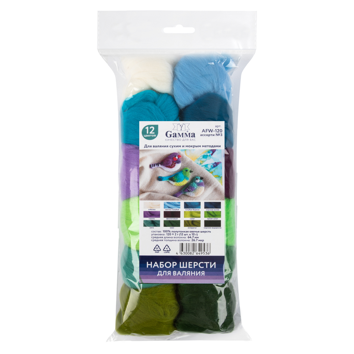 Подходят сухого и мокрого валяния, картин в технике "шерстяная акварель".