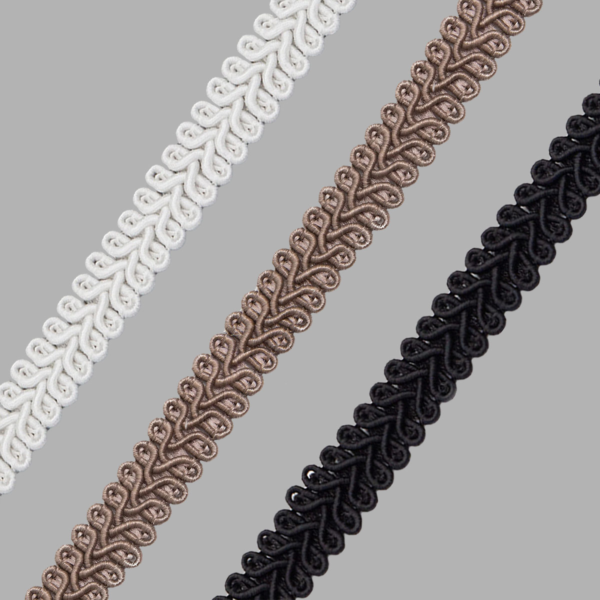 Тесьма отделочная в стиле шанель 13 мм / 1 метр, набор №2, 3 цвета: белый, бежевый, черный