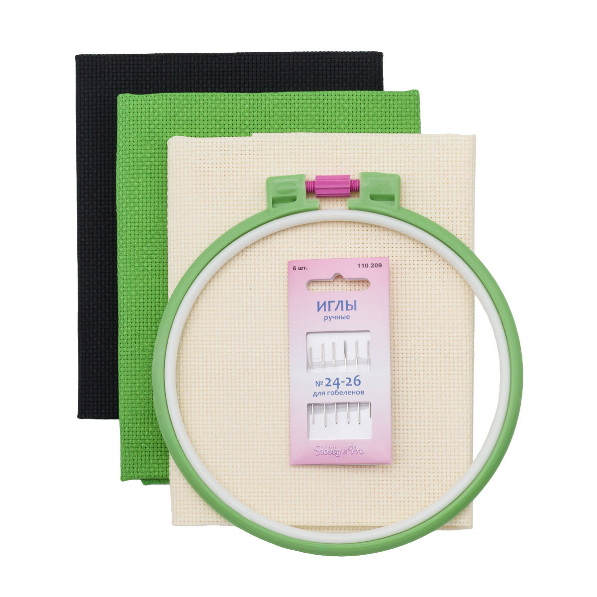 Канва Aida 14 ct, 50х50см, 624010-14C/T, черный/кремовый/зеленый, Bestex