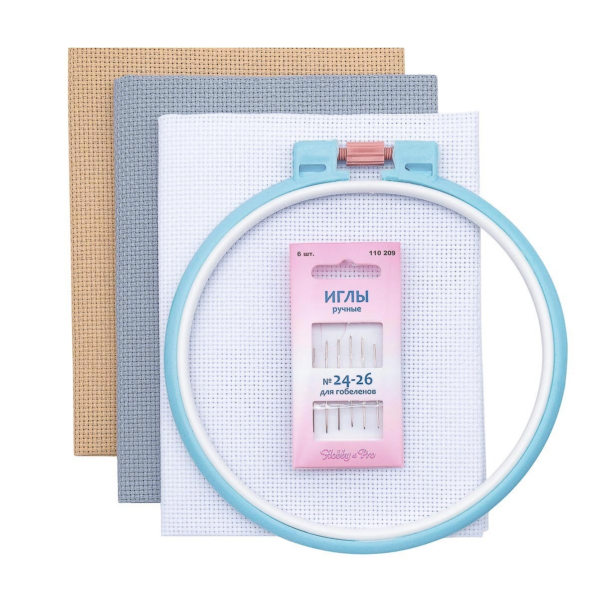 Базовый набор для вышивания: канва 50х50 см (белый/серый/бежевый) + пяльцы и иглы, 624010-14C/T Bestex