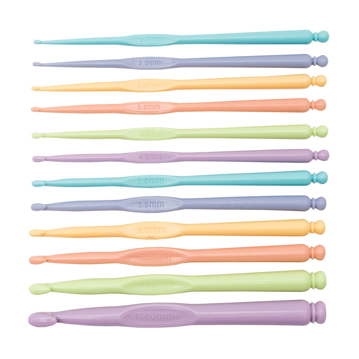 Набор цветных крючков d 2,0-10,0 мм, упак(12 шт),14,8см, пластик, Hobby&Pro, L200-127