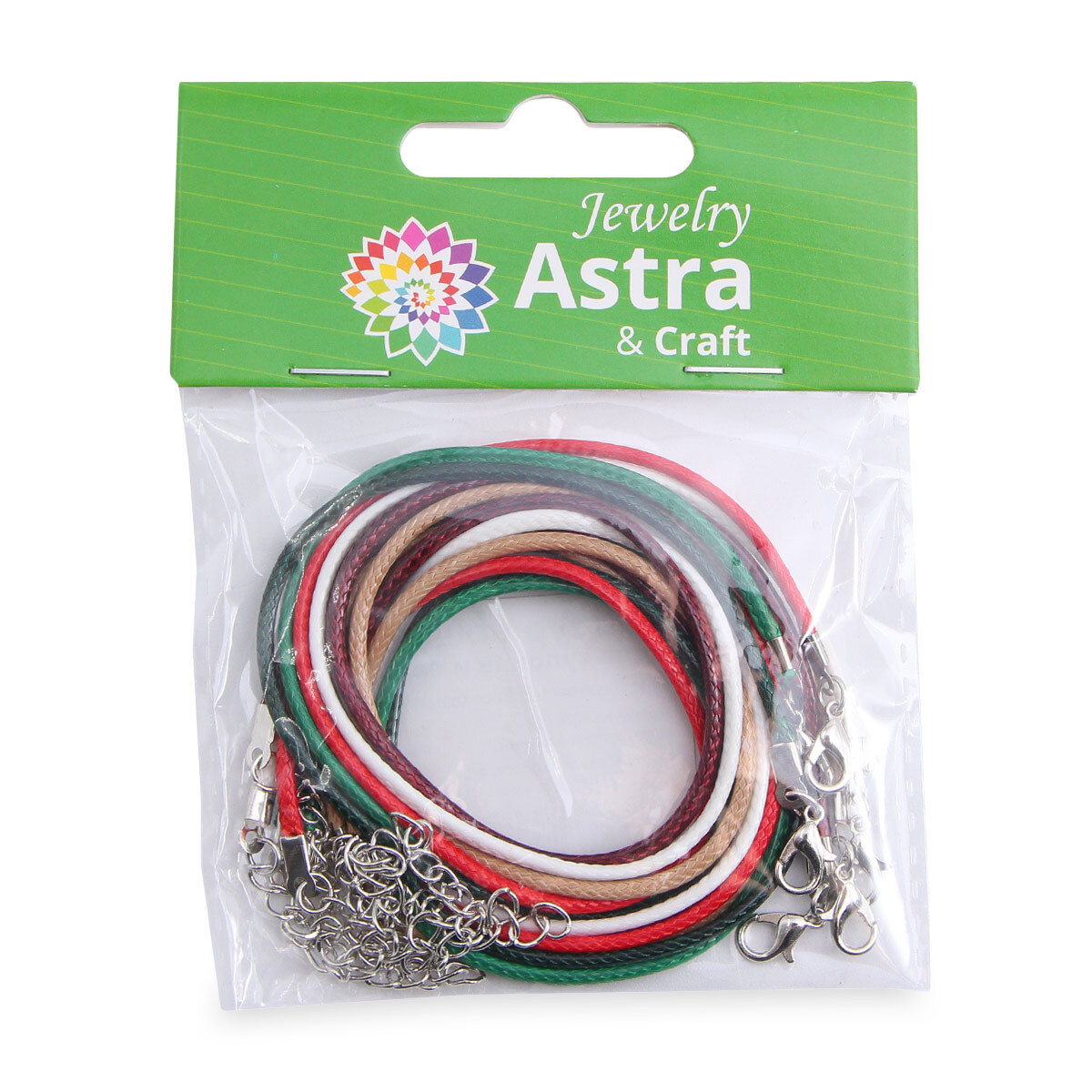 Набор вощенных шнуров для кулонов и подвесок с замком 45см, d-2мм, 6 шт, красно-зеленый, 65236