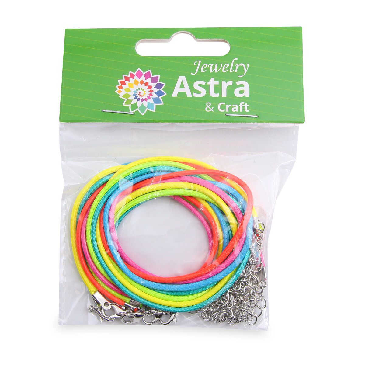 Набор вощенных шнуров для кулонов и подвесок с замком 45см, d-2мм, 6 шт, неоновый, 65236